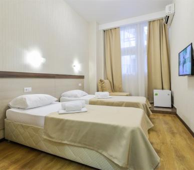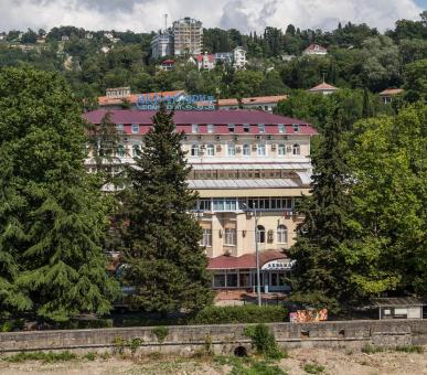 Шестиэтажный корпус пансионата «Аквамарин» выстроен из кирпича и поэтому прохладен летом даже в жаркие дни. Окна номеров выходят на горы или море – гостям обеспечен прекрасный панорамный вид. Каждый номер отеля в пансионате «Аквамарин» в Сочи оснащен мягкой мебелью, удобными ванными комнатами и самой современной техникой. На каждом этаже расположены кулеры и гладильные доски с утюгами.
