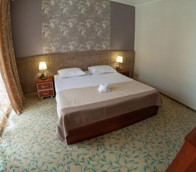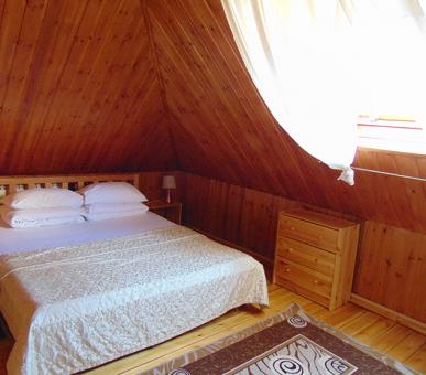 Отель представляет собой одно 4-этажное здание без лифта, комплекс шале из натурального кедра в альпийском стиле и один VIP-коттедж. Все номера корпуса оснащены балконами, кроме последнего – мансардного. В каждой категории установлены ТВ, холодильник, телефон, кондиционер (кроме шале), чайник, фен, халат, с/у и душ. Кровати в номерах основного корпуса только 2-спальные. Часть шале имеют сауну, мини-бассейн, бильярдную комнату. На 1 этажах – террасы, на 2х – балконы.