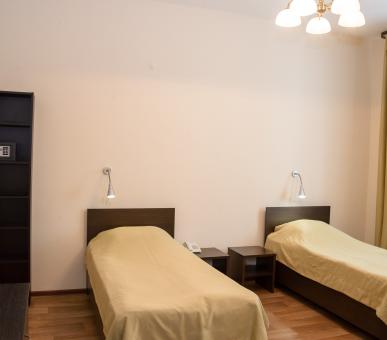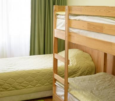 Территория дома отдыха занимает площадь 90 га, являющуюся лесопарковой. Обилие деревьев, пешеходные дорожки и зоны отдыха создают необходимый уют и комфорт. Гостиничный комплекс состоит из 8 отдельно стоящих зданий (4 корпуса и 4 коттеджа), 3-этажного спорт-отеля, расположенного на территории ГЛЦ, столовой, лечебного корпуса №2, развлекательного центра «Non Stop» и аквапарка «Аквариум». Общая вместимость жилого фонда – порядка 1000 мест. Все комнаты обеспечены необходимой мебелью, техникой и санузлами. Доступ Wi-Fi - не везде, как правило, на первых этажах основных корпусов. В номерах и коттеджах – проводной. Двухэтажный корпус 1 стоит недалеко от въезда за линией коттеджей, в стороне от остальных 3 корпусов. Он максимально близко находится к РК «Non Stop» и столовой. Три других корпуса расположены в глубине. 3-этажный корпус 3 и 5-этажный корпус 4 стоят рядом с аквапарком, а 3-этажный корпус 5 – напротив. Балконами оснащены только корпуса 4,5. Корпус 4 традиционно считается эконом-класса. Кирпичные 3-, 4-этажные коттеджи раскинулись вдоль центральной аллеи. В них расположены номера повышенной комфортности. Стоящие рядом коттеджи 1,2 одинаковые, сдаются полностью домами и идеально подойдут для больших компаний. Удобством местоположения отличается спорт-отель. В 100 м от него - бугельный подъемник и вся инфраструктура ГЛЦ.
