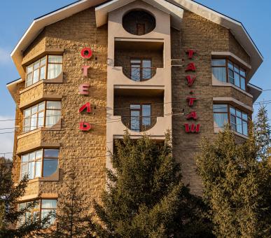 Гостиница заметна издалека. «Тау-Таш» в переводе с башкирского означает «горный камень». Декорированный камнем корпус отеля и красивый каменный забор с коваными элементами оправдывает название. Закрытая территория вмещает в себя 3 жилых корпуса и 2-этажное здание ресторана, соединенное с главным корпусом теплым переходом. Данный 5-этажный корпус предусматривает 20 номеров, в двух других отдельно стоящих 1-этажных корпусах 2,3 размещено соответственно 8 и 12 номеров эконом-класса. Номера в корпусе 1 оснащены всей необходимой мебелью и оборудованием: ТВ, телефоном, холодильником, санузлами с душевой кабиной. В номерах повышенной комфортности – фен, халаты, тапочки. Примечателен интерьер VIP-апартаментов – он выполнен в индивидуальной для каждого номера тематике. Корпуса 2, 3 оборудованы более бюджетно и без холодильников.