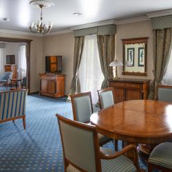 Инфраструктура санатория «Сосновом бор» продумана до мелочей и удовлетворяет любые запросы отдыхающих. Так, на досуге гости могут – в зависимости от своих вкусов и предпочтений – отправиться на летнюю танцевальную площадку либо в кинозал, почитать в тишине библиотеки или поиграть в бильярд, посетить сауну или бассейн. Кроме того, на территории здравницы работают продуктовый магазин и магазин промтоваров, газетный киоск, парикмахерская и аптека; для деловых людей открыт конференц-зал, а для детей – игровая площадка. Доступны услуги экскурсионного бюро и такси.