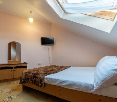 Четырехэтажный корпус отеля разместился на тихой зеленой улице города. Территория с небольшим внутренним двориком благоустроена и огорожена от посторонних. Жилой фонд предлагает отдыхающим номера разных категорий. Гости могут выбрать стандартные номера с индивидуальной ванной комнатой или остановиться в бюджетных вариантах с общим санузлом на этаж. Каждый номер укомплектован удобной мебелью и оснащен техникой: везде есть сплит-система, электрочайник, телевизор.