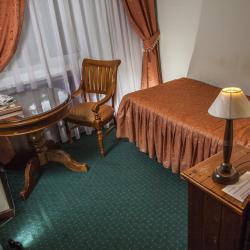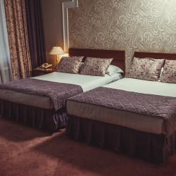 В месте соединения крыльев здания есть башенка – здесь находится стойка регистрации. К жилому корпусу примыкает столовая, в которую можно войти как с улицы, так и из гостиницы.