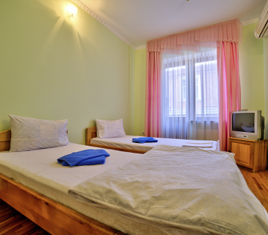 Пятиэтажный корпус отеля построен на месте византийской цитадели. Жилой фонд, рассчитанный на 66 человек, предлагает отдыхающим двухместные номера категории Стандарт, Семейный и Студио и четырех местные номера Семейный 2-х комнатный. В каждом номере есть душ, кондиционер, необходимая техника, кухня — обеденная зона, с балконов открываются виды на окрестные горы или море.