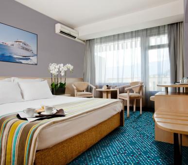Пляж. В 100 м от гостиницы находится мелкогалечный пляж, протяженностью 500 м, попасть на который можно при помощи специального лифта. Пляжу отеля присужден международный сертификат экологичности «Голубой флаг». Он оборудован душевыми и кабинками для переодевания, шезлонги, навесы и туалеты, работают кафе, экорынок.