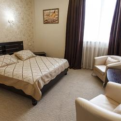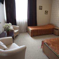 Отель разместился в четырехэтажном историческом особняке с двором-колодцем. Внутри — роскошный интерьер с резными филенчатыми дверьми, главной лестницей с каменными перилами. Жилой фонд включает в себя 43 номера разной категории комфорта — от Экономов с общим санузлом на этаже до просторных светлых Люксов с высокими окнами. Во всех номерах есть телевизор и фен.