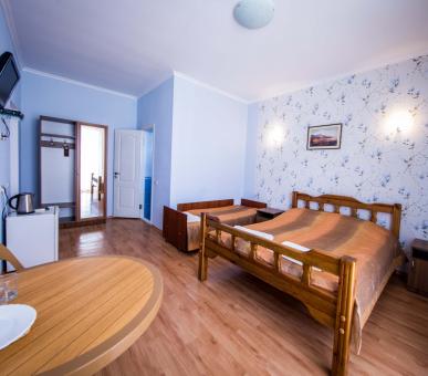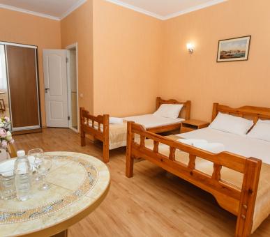 Четырехэтажный корпус отеля, разместившийся на первой береговой линии, занимает часть территории комплекса отдыха «Скиф». Гостей ожидают стандартные однокомнатные номера, рассчитанные на единовременное размещение 40 человек. Светлые просторные комнаты укомплектованы необходимым мебельным гарнитуром, везде установлен кондиционер, есть телевизор, электрочайник, набор посуды, телевизор, предусмотрен индивидуальный санузел с душем.