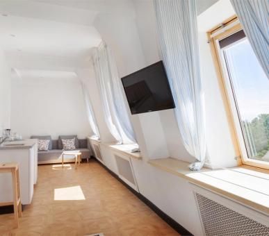8-ми этажный корпус отеля, оснащенный лифтом, возвышается на территории площадью 2 гектара. Номерной фонд состоит из 111 комфортабельных номеров разного уровня комфорта, оформленных в светлых оттенках и использованием ярких акцентов. Все они укомплектованы качественным мебельным гарнитуром, бытовой техникой, оснащены санузлом с душем или ванной, в ряде номеров имеется оборудованная мини-кухня и общий балкон на 3 – 4 комнаты. А также номера с индивидуальным балконом и видом на финский залив.