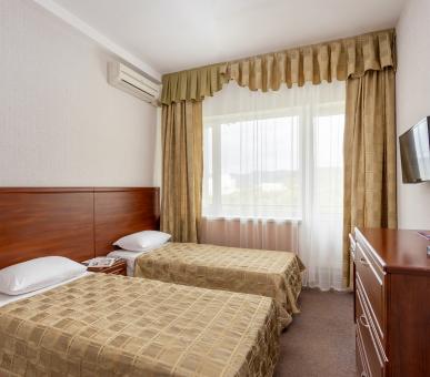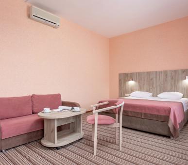 Отель занимает благоустроенную территорию площадью чуть больше 11 гектаров, расположенную в парковой экологически чистой зоне. Гостиничный комплекс включает в себя пятиэтажный спальный корпус, связанный теплым переходом с двухэтажным зданием столовой, пятиэтажный отдельно стоящий лечебный корпус и несколько одноэтажных коттеджей. Обширный номерной фонд, рассчитанный на 600 гостей, предлагает однокомнатные и двухкомнатные номера разных категорий, в том числе и коттеджи с апартаментами, оснащенные мини-кухней. В номерах современный лаконичный интерьер, выдержанный в приятной пастельной гамме, везде есть кондиционеры, ванные комнаты с душем и необходимая бытовая техника.